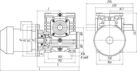 • двигатель горизонтальный, тихоходный вал вертикальный, справа от двигателя;
