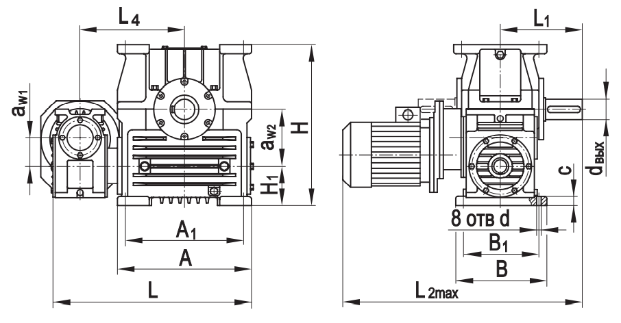 Типоразмер аW1 аW2 А А1 В В1 L* L1* L2max L3* L4 Н Н1 сd d вх dвых