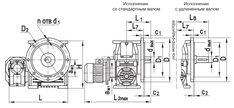 * Размеры приведены без учёта длины резьбового конца вала исполнения К2.