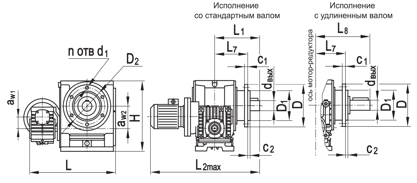 Типоразмер аW1 аW2 D D1 D2 H L* L1* L2max L3* L7 L8* c1 с2 d1 dвх dвых n