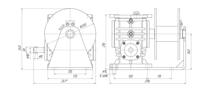 Монтаж лебедки производится на горизонтальную опору. При эксплуатации лебедки необходимо: