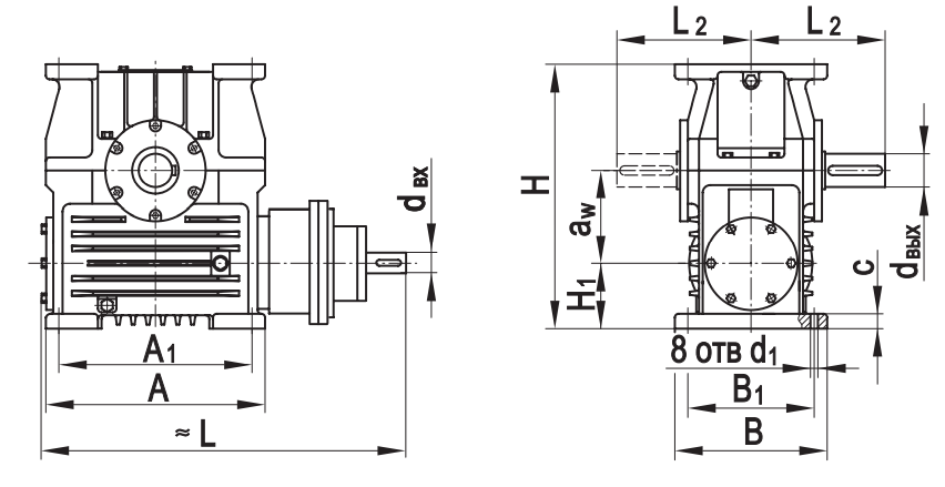 Типоразмер аW А А1 В В1 L* L1max L2*Н Н 1 сd d вх dвых