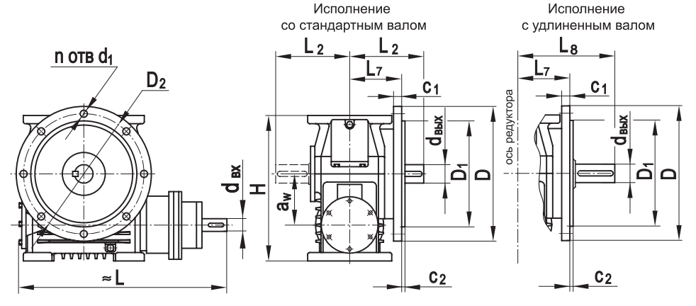 Типоразмер аW D D1 D2 H L* L1max L2* L7 L8 c1 c2 d1 dвх dвых n