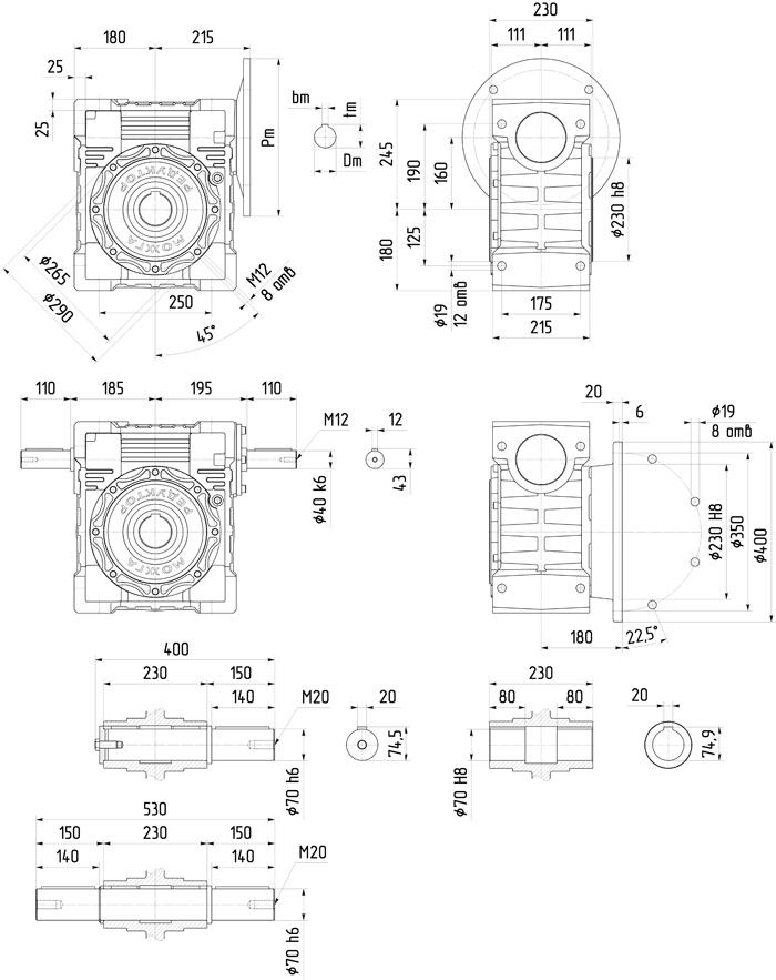 Габаритные и присоединительные размеры редуктора 6Ч-100