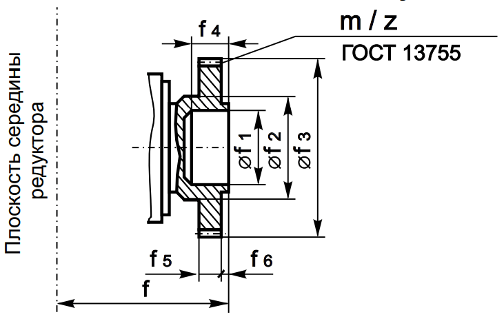 Размеры конца тихоходного вала в виде зубчатой полумуфты